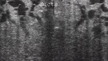 - Ocena przewodów mlekowych (ich szerokości, zmian ogniskowych wewnątrzprzewodowych)